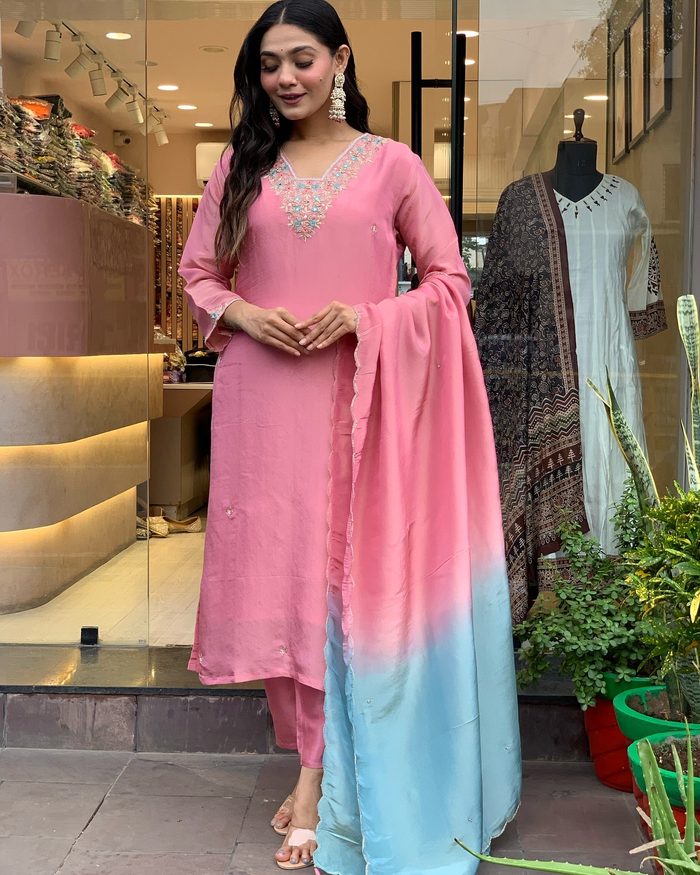 KURTI Fabric – Roman silk with embroidery work