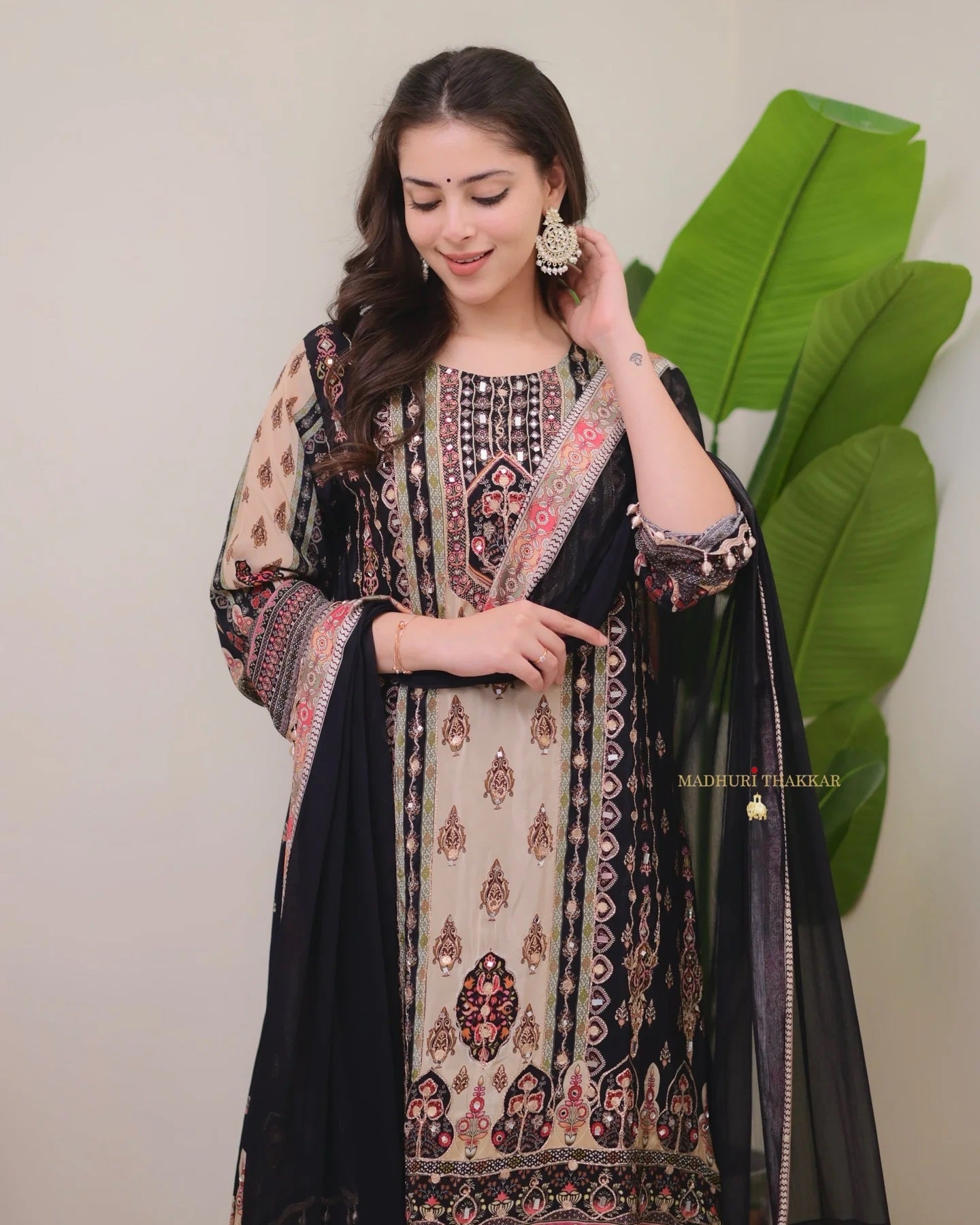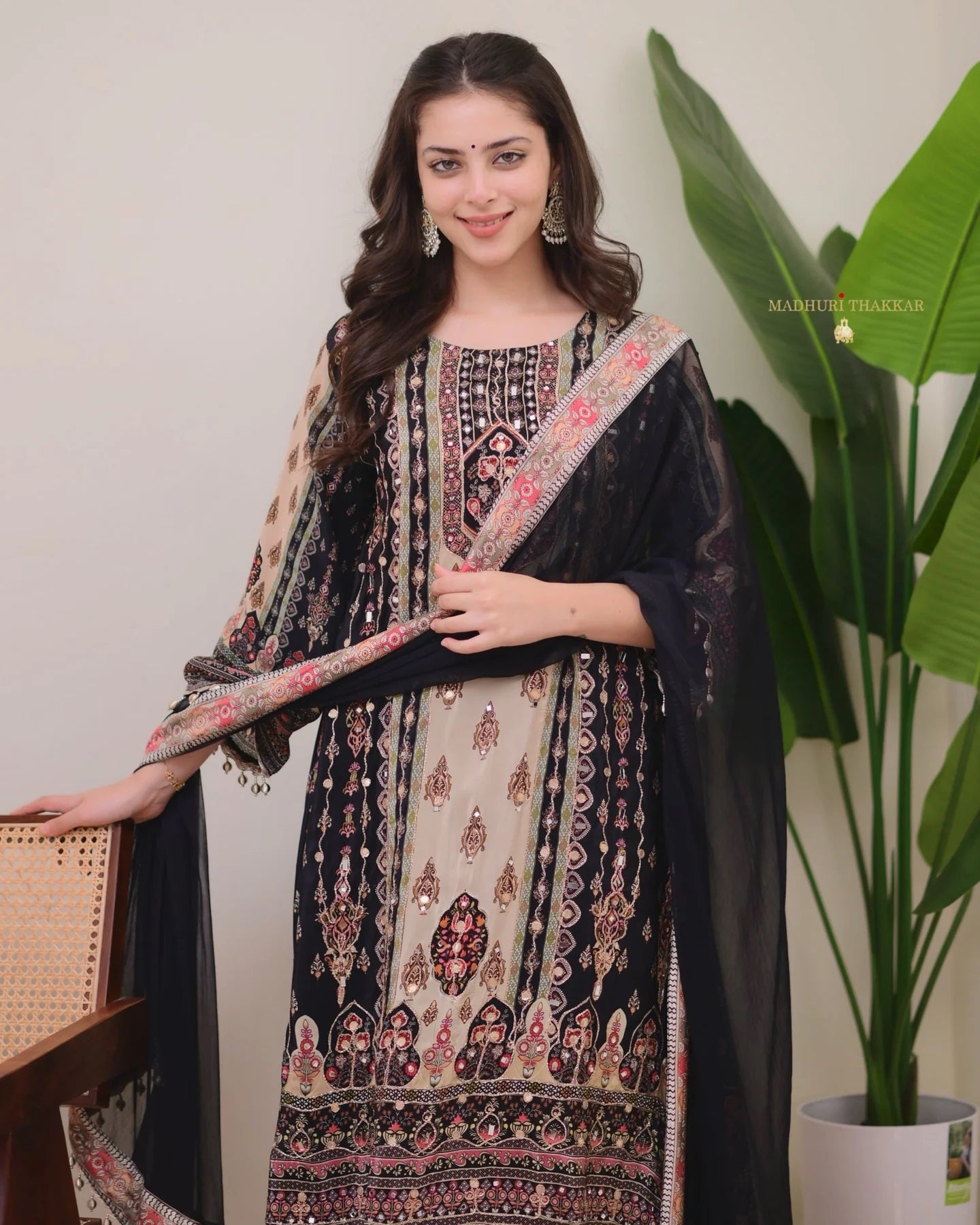 JAYPURI TRENDING BLACK TOP WITH PRINTED WORK WITH MIROR WORK WITH PLAZZO AND DUPATTA