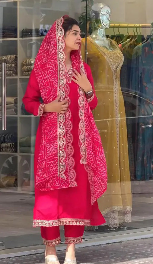 ALL TIME HIT AND ANYWHERE WEARABLE FANCY MASLIN PRINTED AND REAL MIRROR WORK TOP AND PANT WITH PRINTED DUPATTA