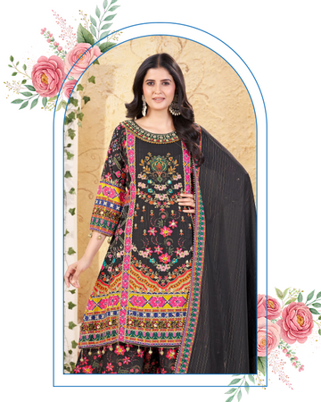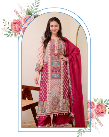 PAKISTANI SUIT WITH DUPATTA SET 3-Piece { Kurta - Pant - Dupatta } Fabric Details...